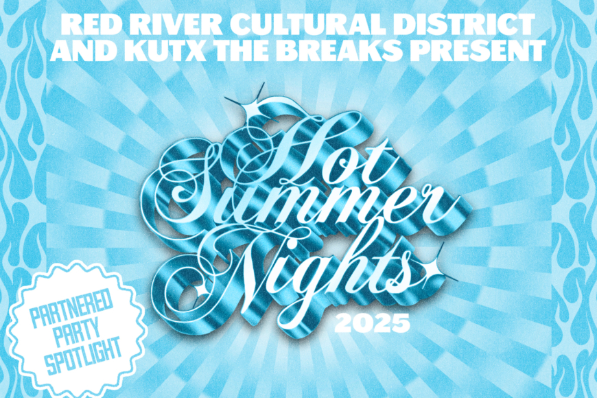 EventJul 8, 2025Jul 25, 2025 Red River Cultural District’s Hot Summer Nights: The Breaks’ Summer Jam Part of the Red River Cultural District’s Hot Summer Nights festival, July 25th is KUTX’s Summer Jam party! Come […]