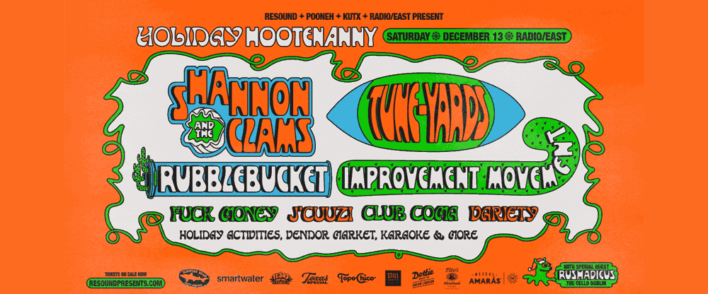 Pooneh Ghana’s Holiday Hootenanny is back with Shannon & The Clams, tUnE-yArDs, Rubblebucket, Improvement Movement, Fuck Money, J’cuuzi, Club Coma, and Variety. All ages event.