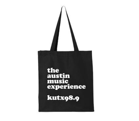 Represent the Austin Music Experience with our latest KUTX tote bag. Printed on black canvas, this tote can hold anything from your farmer’s market finds to your record hauls.